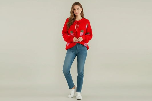 Strawberry Tie front Cardigan