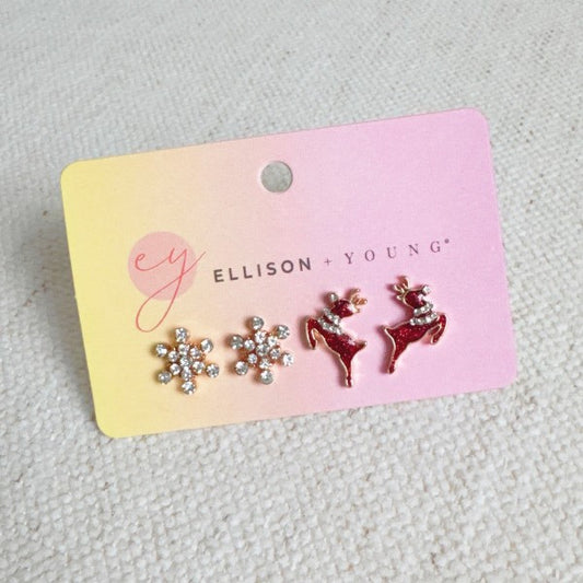 Reindeer & Snowflake Stud Earrings Set – Festive Holiday Jewelry Gift