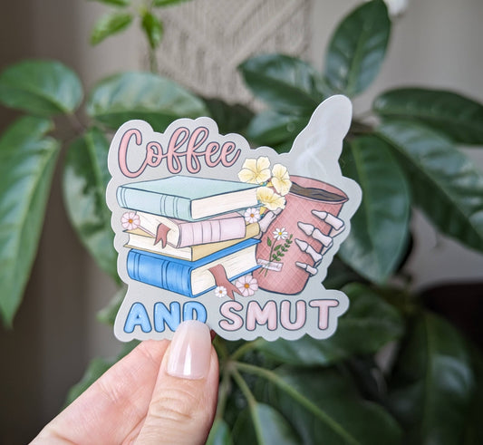 Coffee and Smut Vinyl Sticker | Earth Tone Bookish Sticker | Reader Humor Merch